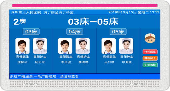 系統還集成了信息通知、費用查詢(xún)、住院廣播等豐富的信息交互功能,保證病患與醫護人員間的及時(shí)溝通,